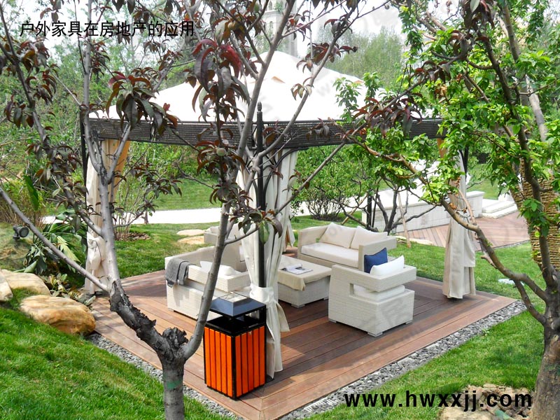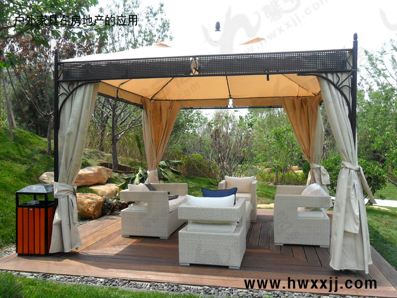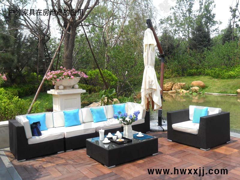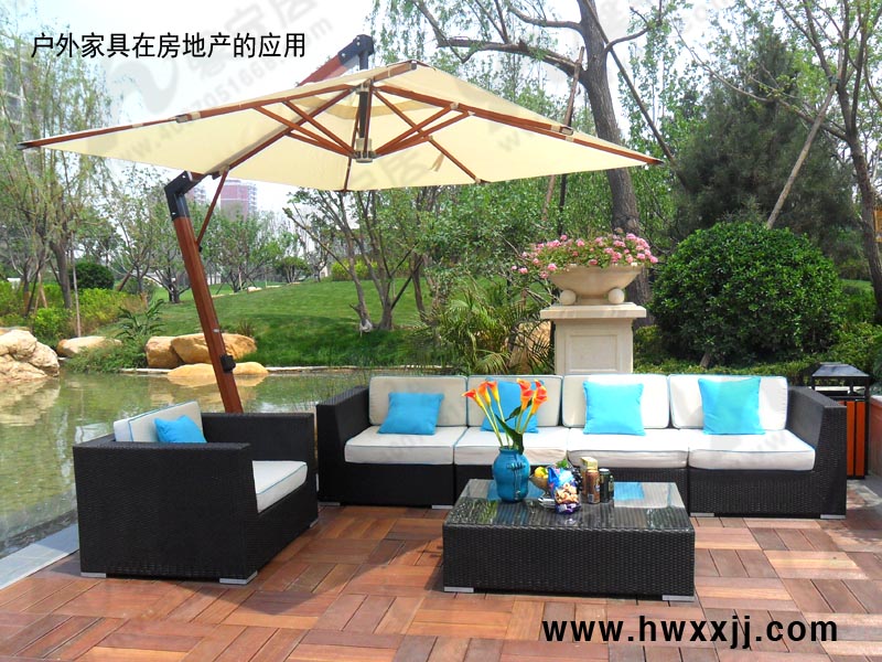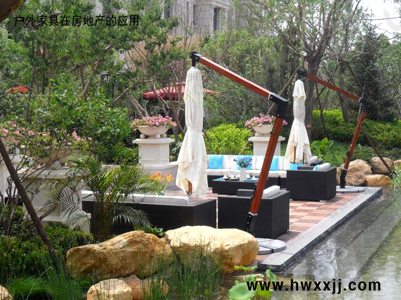 17.C1起草视频讓您享受戶外舒適生活。這組案例中是某房地產公司外的景(jǐng)色,17.C1起草视频的遮陽傘、藤編沙發、休閑涼亭為這美麗的環境相呼應。黑色的沙發搭(dā)配靚(liàng)麗的白、藍坐墊和(hé)靠墊,高檔的木吊傘既能承托高貴的氣質,又(yòu)能遮擋(dǎng)炎炎的日光。呼吸著大自然(rán)的新鮮空氣,聽著(zhe)水流動的聲音悠閑(xián)的度過一(yī)個燦爛的日子,或是享受一個美好的夏日夜晚。